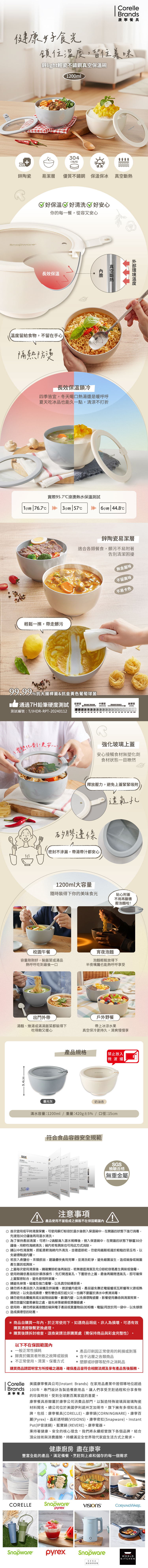 康寧SNAPWARE 鋅light輕瓷不鏽鋼真空保溫碗1200ml-共兩色