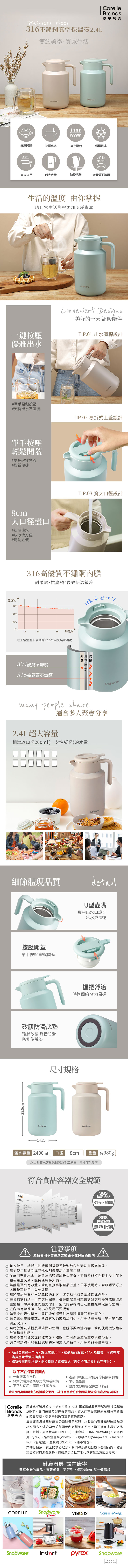 康寧SNAPWARE 316不鏽鋼真空保溫壺2400ml-共兩色