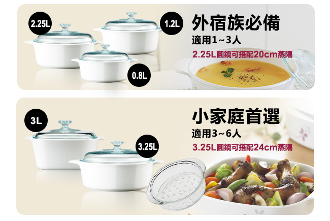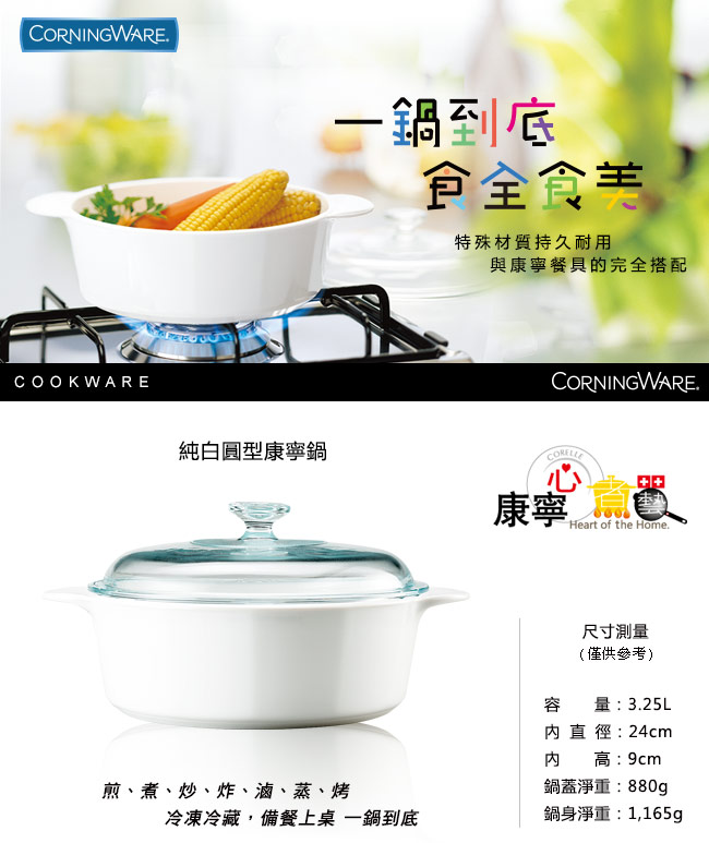 商品名稱:康寧Corningware 圓形康寧鍋3.2L-純白