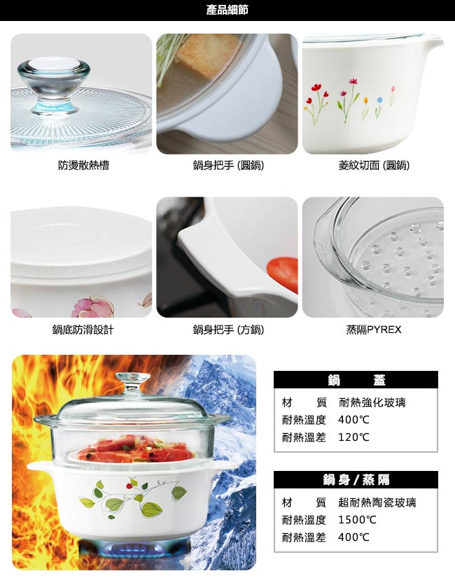 耐熱溫差:120℃(鍋蓋),400℃(鍋身)