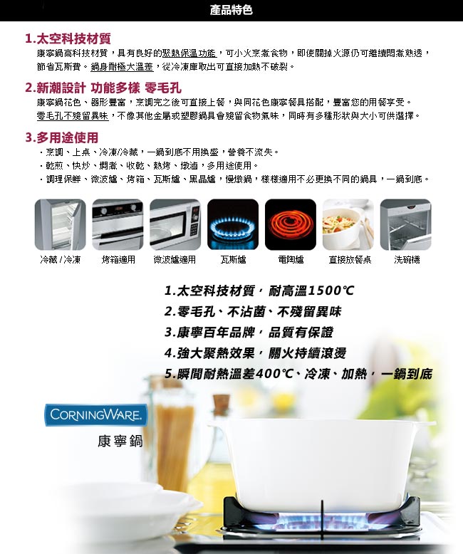 適用範圍:調理保鮮.瓦斯爐.烤箱.微波爐.電陶爐.洗碗機.黑晶爐.慢燉鍋