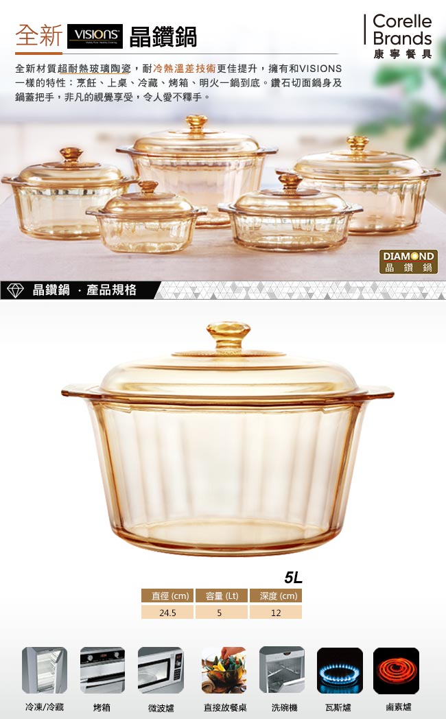 康寧 Visions 5.0L晶鑽透明鍋